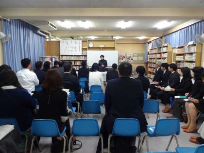授業後、図書室で小・中・高・大の先生方が集まり、熱心な協議会が行われました。
