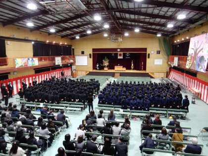 本日は肌寒い日でしたが、天候に恵まれた中で第35回卒業証書授与式を挙行しました。卒業生、在校生ともに儀式的行事としてふさわしい態度でした。本日と来週にかけ式の様子をホームページで紹介していきます。