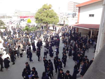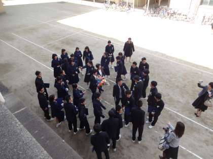 卒業生が写真を撮ったり、担任にお礼を言ったりしていました。