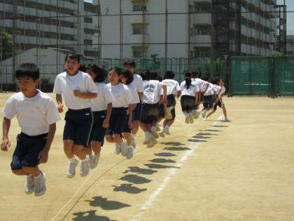 ・各学級が2つのチームを作り大縄跳びをしました。なんと26回跳んだ班があり、大変盛り上がりました。