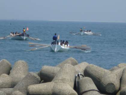 カッター訓練では、大きな声をだし、みんなで息をそろえて、協力し舟をこぎました。