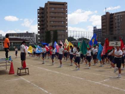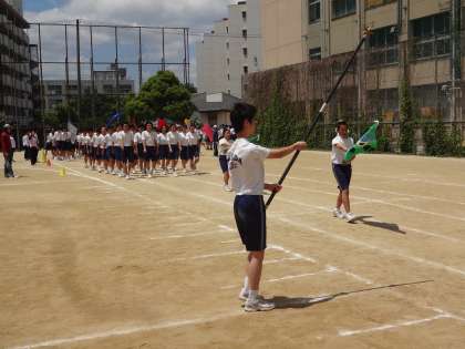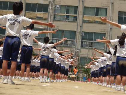 本日の3・4限で体育大会の全体練習をしました。寒いくらいの心地よい風が吹く中、入場行進やラジオ体操、50m走への場所移動、閉会式など全校で練習をしました。整然と、しかも元気よく550人が一斉に行進やラジオ体操などをし、体育大会当日の確認をしました。