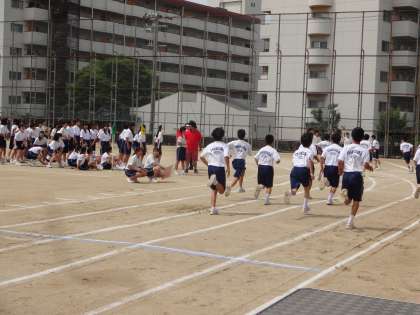 昨日とは異なりさわやかな風が吹く晴天のもと、昨日途中からできなかった体育大会の予行を行いました。