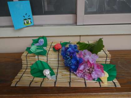 今日は、校長室前の梅雨です。食べ物にも気を付け健康に留意し、じめっとしたこの季節をのりきりましょう。