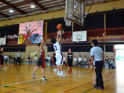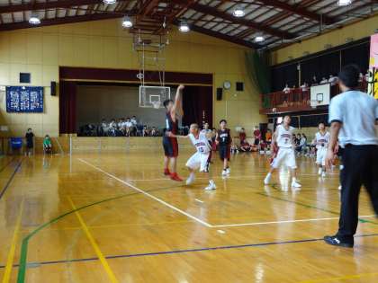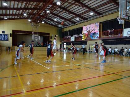 女子バスケットボールに続き10日(日)に本校を会場として、男子バスケットボールの府大会1回戦が行われました。相手チームは佃より全体に一回り大きな選手でした。前半は互角の勝負でしたが、後半にはじわじわと点数を広げていき、快勝しました。