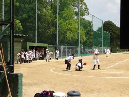 本校の野球部は平野フェスティバル大会の予選リーグを勝ち進み、8月4日、久宝寺の野球場にての決勝トーナメントでの試合に臨みました。1−3で負けましたが、3年生最後の試合となり部員が一丸となり試合をおこないました。明日からは新チームで練習が始まります。