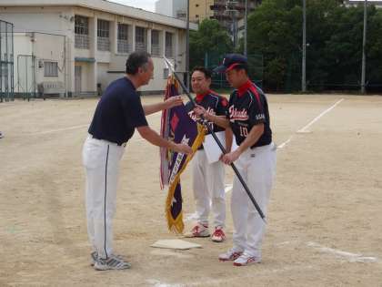 おめでとうございました。賞状と優勝旗をもらいました。次は大阪市の大会です。ぜひ、がんばってください。