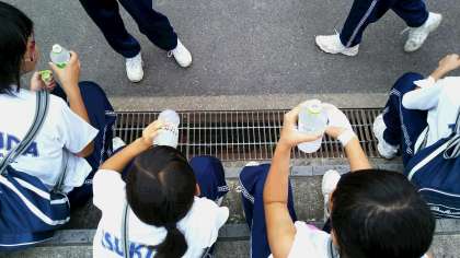 オリエンテーリングも無事終了しました。終わった生徒はスポーツドリンクをもらって水分補給をしました。