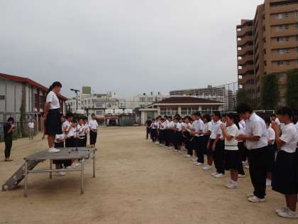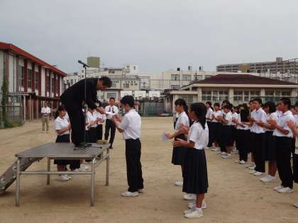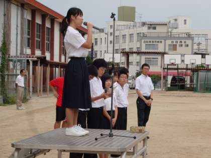 本日は全校朝礼で先週行われた生徒会役員選挙の結果発表と認証式を行いました。生徒会7名が信任され今日から1年間、佃中学校の生徒代表として取り組んでくれます。