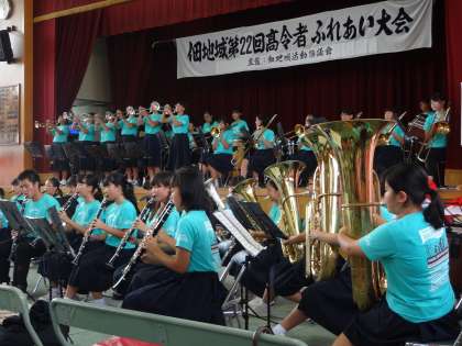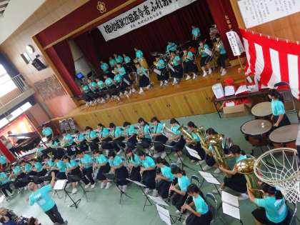 2日の日曜日に佃西小学校で「佃地域第22回高齢者ふれあい大会」が開催されました。本校の吹奏楽部も出演し、地域の高齢者の方々に音楽のプレゼントをしました。