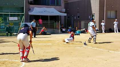 先週の日曜日の10/9に天満中学校が会場で大阪市PTAソフトボール北ブロック大会が行われる予定でしたが、あいにくの天気で順延となり10日に行われました。順延となったことにより、パパさんの仕事の都合などでメンバーは9名のギリギリ、しかも足など痛めている選手もおられる中、先制点はとりましたが、結果は負けてしましました。