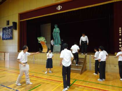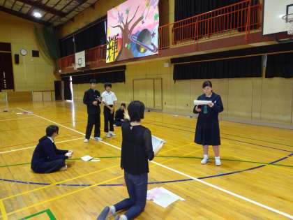 舞台発表の練習は体育館で大道具も一部持ち込んでやっていました。またダンスは教室で練習をしていました。