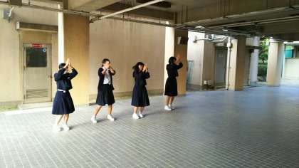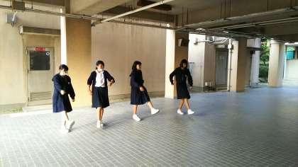 舞台に出るダンスチームの生徒が朝からピロティで練習をしていました。