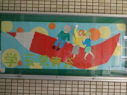 正面玄関に美術部が作成した学芸発表会の掲示がしてあります。来週は時間割も一部変更しながら最終仕上げに入ります。