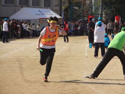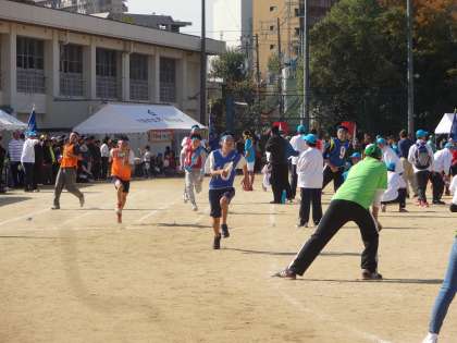 本日最後の地域対抗リレーに佃・千舟のそれぞれの地域のアンカーに中学生が走りました。