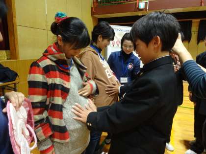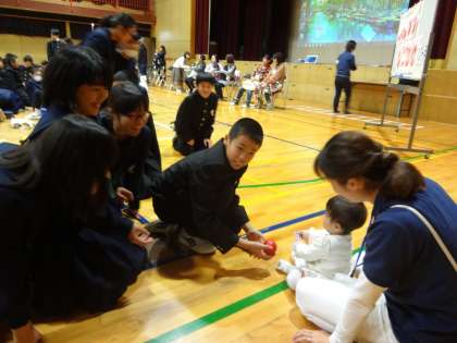 昨日の午後から、学校保健委員会が中心となり1年生の性教育を行いました。NPO法人にしよどにこネットの方にお世話になり、赤ちゃん親子が10組、妊婦さんが2人もきていただきました。