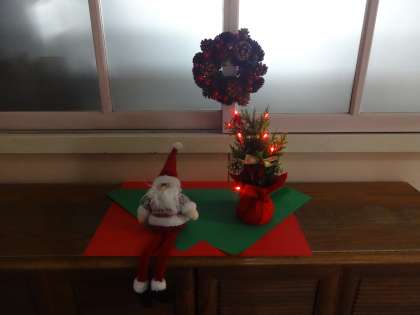さて、トイレの工事も終わり、テストも終わりましたので校長室の前にはクリスマスの飾りをしました。生徒たちは喜んでくれているのではないでしょうか。