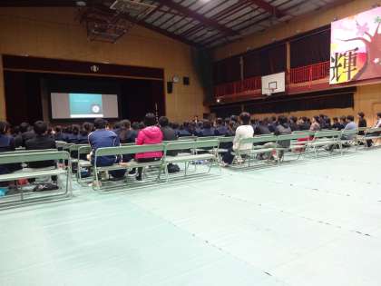 昨日の午後から3年生は進路講話として、的場亮先生をお招きし90分お話を聞くことができました。的場先生は、一昨日は鹿児島で講演会、本日は広島での講演会とお忙しい中、本校に来ていただきました。