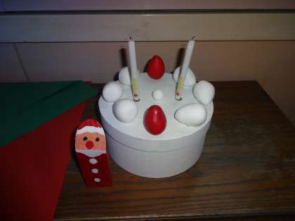 特別支援学級の生徒がケーキとサンタ(上の写真)