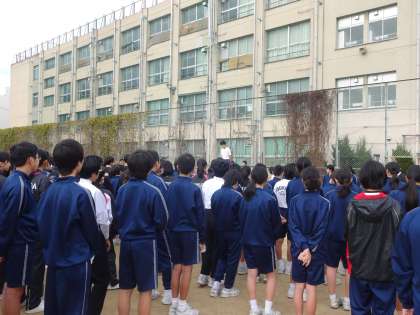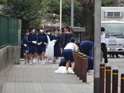 生徒会の代表のあいさつ後、諸注意がありいつも使っている場所や学校の周辺を感謝の気持ちを込め清掃活動をしました。
