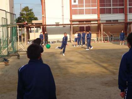 ・水泳部は本日が初日で、ドッジボールをし体をほぐしていました。(上の写真)