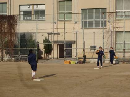 ・ソフトボール部はキャッチボール(真ん中の写真)