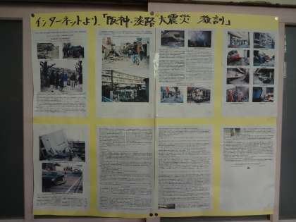 今回は、インターネットより引用し、校長室前に「阪神・淡路大震災の教訓」を掲示しました。今週末の土曜授業に来校されたときにご覧いただけると有難いです。