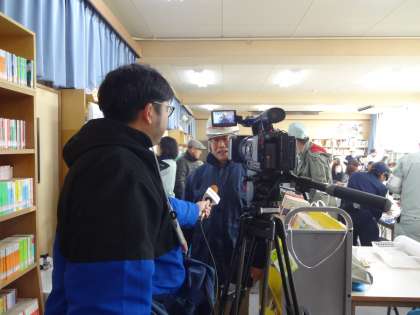 NHKとケーブルテレビが佃中学校に避難訓練の様子の撮影に来られました。ちなみにNHKはお昼の関西版で放送しました。(下の写真)