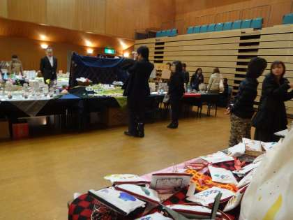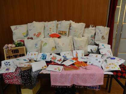 先週の28日の土曜日にエルモ西淀川で区PTA協議会文化祭がありました。本校のPTAは社会見学の時に作成した友禅染の作品を展示しました。各校PTAがそれぞれ工夫し、展示していました。
