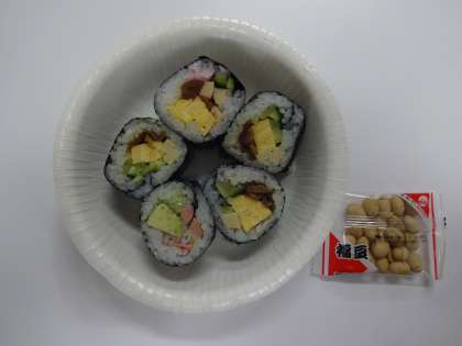 本日、特別支援学級の生徒と担当の先生で節分の巻きずしを作りました。とてもおいしかったです。