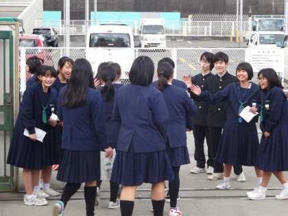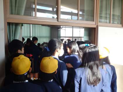 小中交流会は、佃・佃西・佃南小学校の6年生が本校に集まり、生徒会が作成した部活動紹介ムービーを見てから、小学校の各クラスに生徒会の役員がつき、16ある部活動を見学しました。ゆっくりとは見学できませんでしたが、比較的気温も高く小学生は楽しんでくれたと思います。その後生徒会が正門で小学生の帰るのを見送りました。小学生と中学生がハイタッチをし、心和みました。