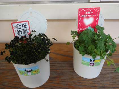 校長室前には合格を祈願し、四つ葉のクローバーをおきました。