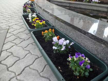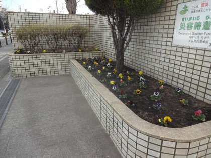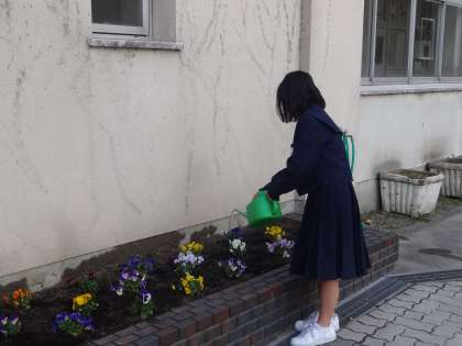 昨日1年生が卒業式のお祝いとして、正面玄関周辺やプランターにパンジーとビオラを植えました。本日の朝、1年生は早速水やりもしてくれました。きれいです。卒業生も喜んでくれています。