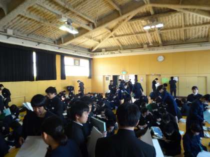 さて、昨日、3年生は卒業式の練習や大清掃をしました。6時間目は卒業アルバムを受け取り3年間の思い出を楽しみ、みんなでアルバムへのサイン会をしました。いよいよ中学校への登校も2日となりました。