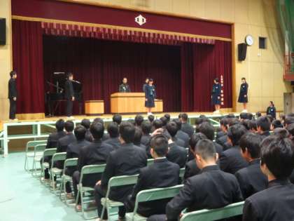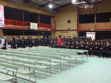午前中に在校生も入り、入場から最後まで卒業式の予行をしました。