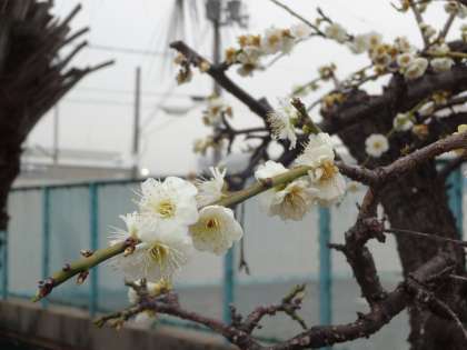 校庭の白梅と紅梅です。満開で春は間もなくです。