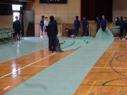 いよいよ明日は入学式です。新入生として170名が入学してきます。本日は体育館周辺や校舎の清掃、新1年生が使う教室の整備、会場準備と新2・3年生がしてくれました。