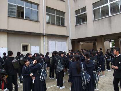 まず、クラス分け発表(上の写真)。新2・3年生の新しいクラスの発表がありました。続いて、体育館で今年度より着任された教職員の紹介をしました(真ん中の写真)。