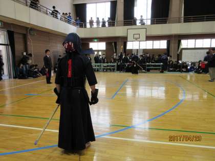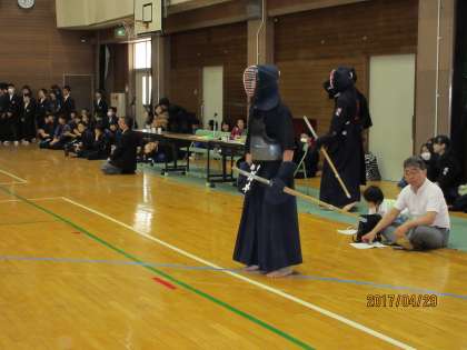 今年の春季総合体育大会の剣道の個人戦に出場しました。これからも地域の活動として一生懸命取り組んでください。