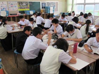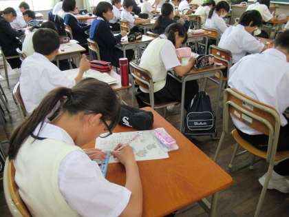 本日の5時間目の1−3の美術(上の写真)、1−4の技術(真ん中の写真)、1−5の社会(下の写真)はICTも利用している様子です。