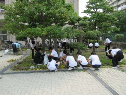本日、2年生は検診が終わった学級から正面玄関の周辺の草抜きをしてくれました。2年生の生徒は一生懸命作業をしてくれました。