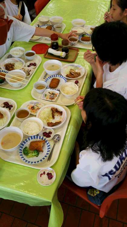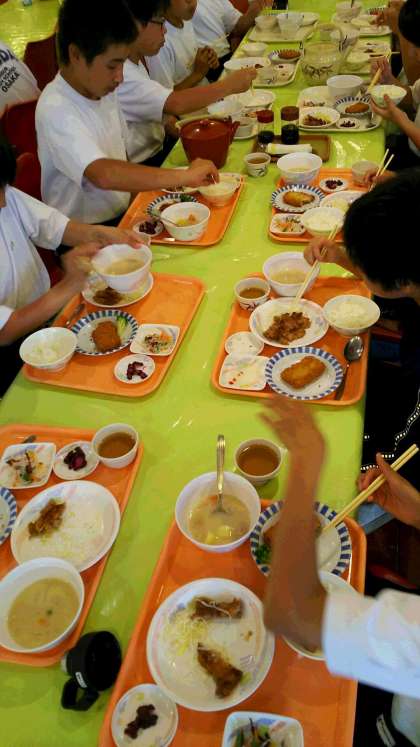 夕食です。鶏の照り焼き、イカ野菜かつ春雨サラダなどです。おいしく食べています。