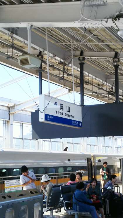 岡山まで来ました。車内はとてもにぎやかで楽しんでいます。