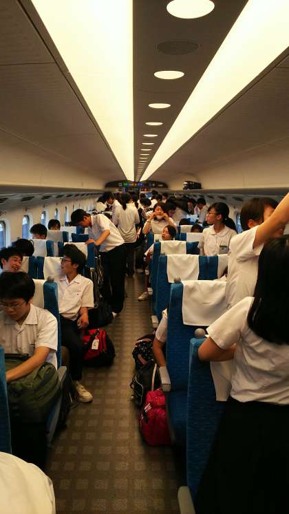 小倉に着きました。次の博多で降ります。子どもたちは下車準備中です。