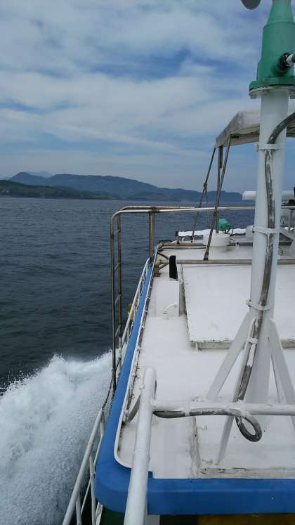 イルカウォッチングも終わり、戻っています。次は千々石観光センターでのお土産購入の時間です。