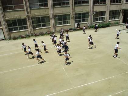 先週の19日の金曜日は、3年生は修学旅行、2年生は校外学習(平和学習)を実施し、学校に残ったのは1年生だけでした。もちろん、学習はしていますが、広い学校に1年生だけのため、校舎内や校舎外が使いたい放題のためレクリエーションを行いました。