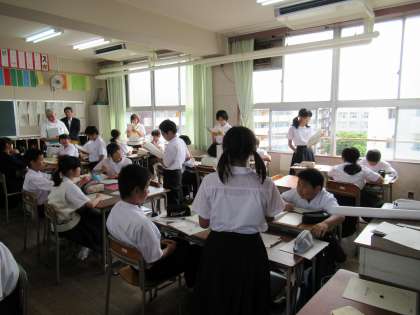 本日の5時間目に1−1で沖林先生が教育センターの指導員の先生に来ていただき、基本研修をしました。