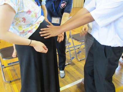 下の写真は、妊婦さんのおなかを触らせていただきました。命のつながりを感じました。