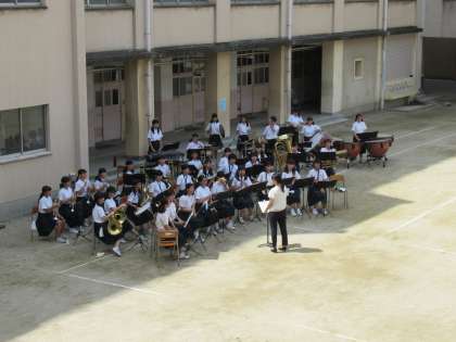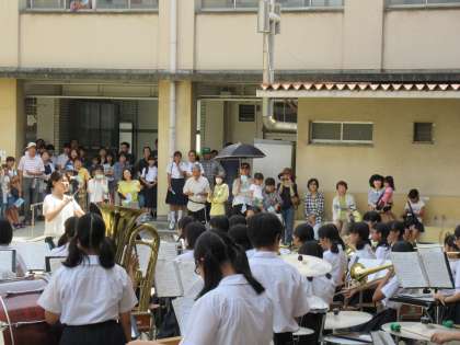 中庭では吹奏楽部が初めての試みとして「青空コンサート」を、保護者や地域の皆様を対象に行いました。