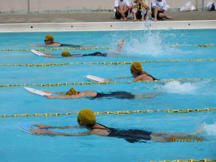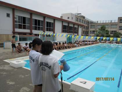 2年生の水泳大会が行われました。クラス対抗、部活動対抗などの内容で競技がスタートしました。体育委員が中心となり、スムーズに進行をしてくれました。また、誰もが競技・応援・観戦マナーすべて「一生懸命!」に取組めていました。参加者全員が協力し水泳大会を盛り上げてくれました。素晴らしい大会でした。